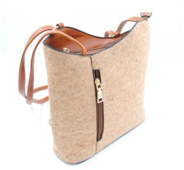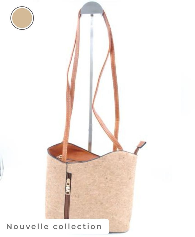 Sac à main 70 % liège naturel, 30% en simili cuir couleur camel